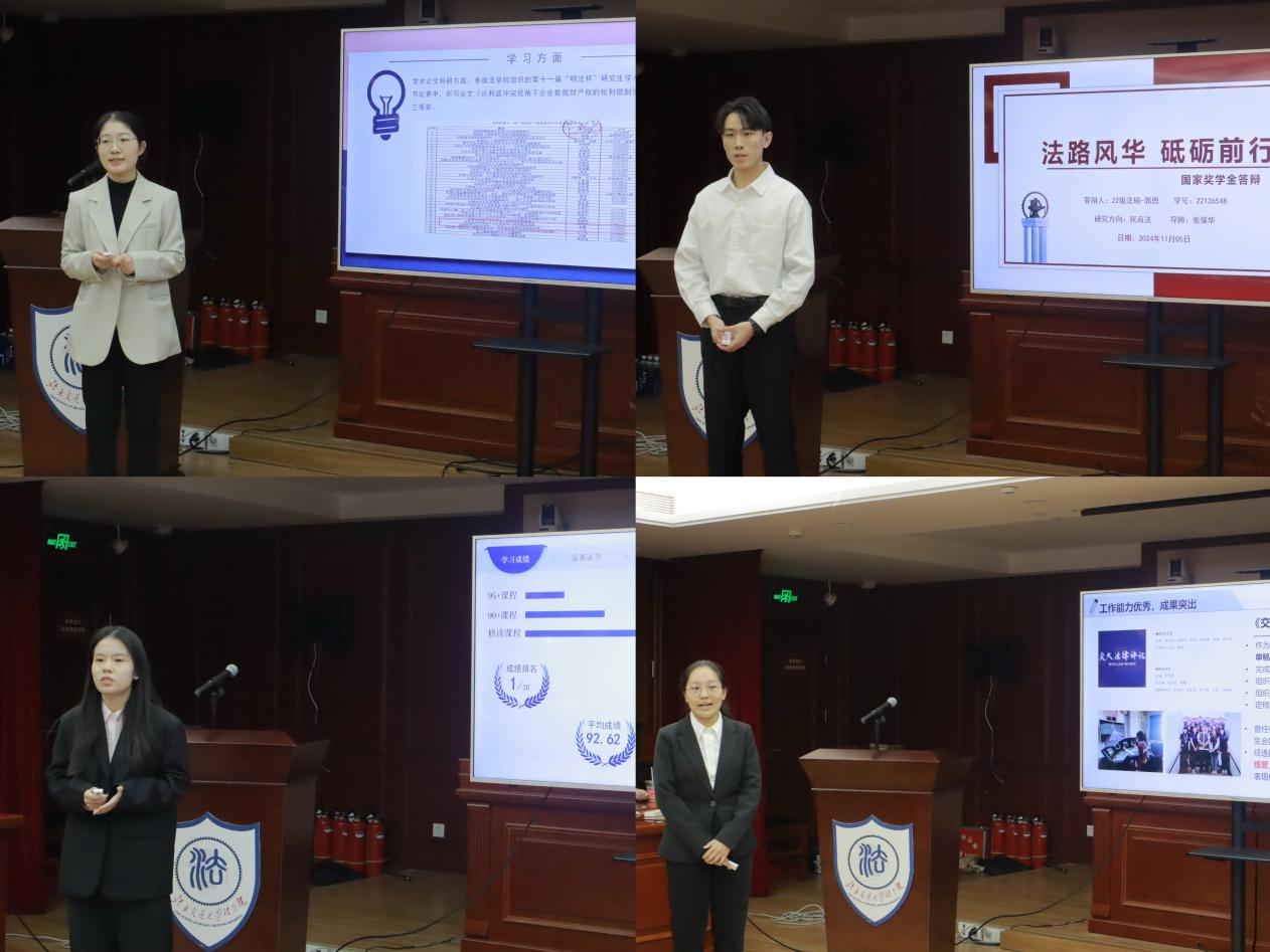 本研候选人精彩的答辩不仅展示了他们锐意进取的精神面貌,更表达出法学生严谨细致,精益求精的青春风采。全体在校生在线上观摩了答辩会。