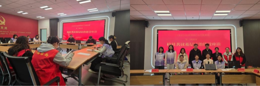 The delegation first conducted a field investigation and symposium at Yushui Community. Du Conghui, Secretary of the Party Branch of Yushui Community in Rongxi Area, systematically introduced the community's achievements and practical challenges in legal infrastructure development, with particular emphasis on the "135" working methodology for rule of law construction and the operational mechanisms and outcomes of characteristic governance projects such as the "Xiaoyu Mediation Team" and "Silver Age Guardian Unit." This investigation provided faculty and students with deeper insights into the legal demands and governance difficulties in relocated communities, establishing a foundation for subsequent targeted legal education initiatives.