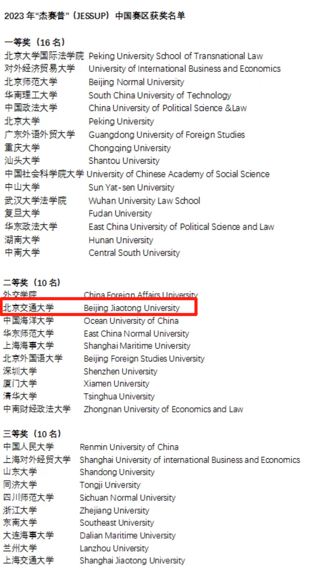 2023年2月24日至3月1日 ,中国第二十一届 “杰赛普(Jessup)国际法模拟法庭比赛” 于线上举行。比赛采用全英文进行,北京大学、清华大学、中国人民大学、中国政法大学、华东政法大学等高校的57支赛队参加了本届比赛。365英国上市集团代表队首次参赛,在初赛循环赛中分别对战复旦大学、中国人民大学等代表队,经过激烈角逐,最终排名全国第18名,获得全国二等奖的第二名。
