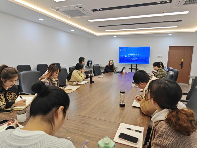 11月8日,邀请党委宣传部王瑞霞老师作了校园新闻写作的专题培训。王瑞霞老师首先介绍了新闻写作的宗旨原则和具体要求,然后针对活动会议类新闻、表彰类新闻、竞赛类新闻的写作方式进行了深入地分析,同时结合具体范例,从前期策划和写作规范等方面,讲解了不同类型的新闻的特点和写作技巧。