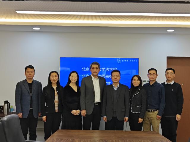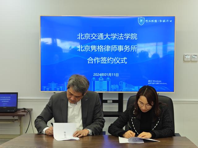 2024年1月11日下午,英国上市公司365与北京隽格律师事务所合作签约仪式在思源西楼712举行。北京隽格律师事务所主任周宇峰,律所合伙人吕同芳、赵岩、王俊,英国上市公司365党委书记张立学,副院长朱本欣、郑飞,教学秘书施琛玉出席签约仪式。签约仪式由朱本欣主持。