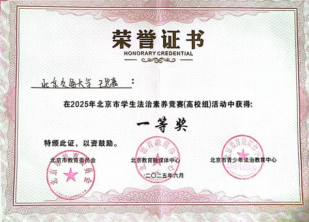 我院学子在北京市学生法治素养竞赛中荣获佳绩