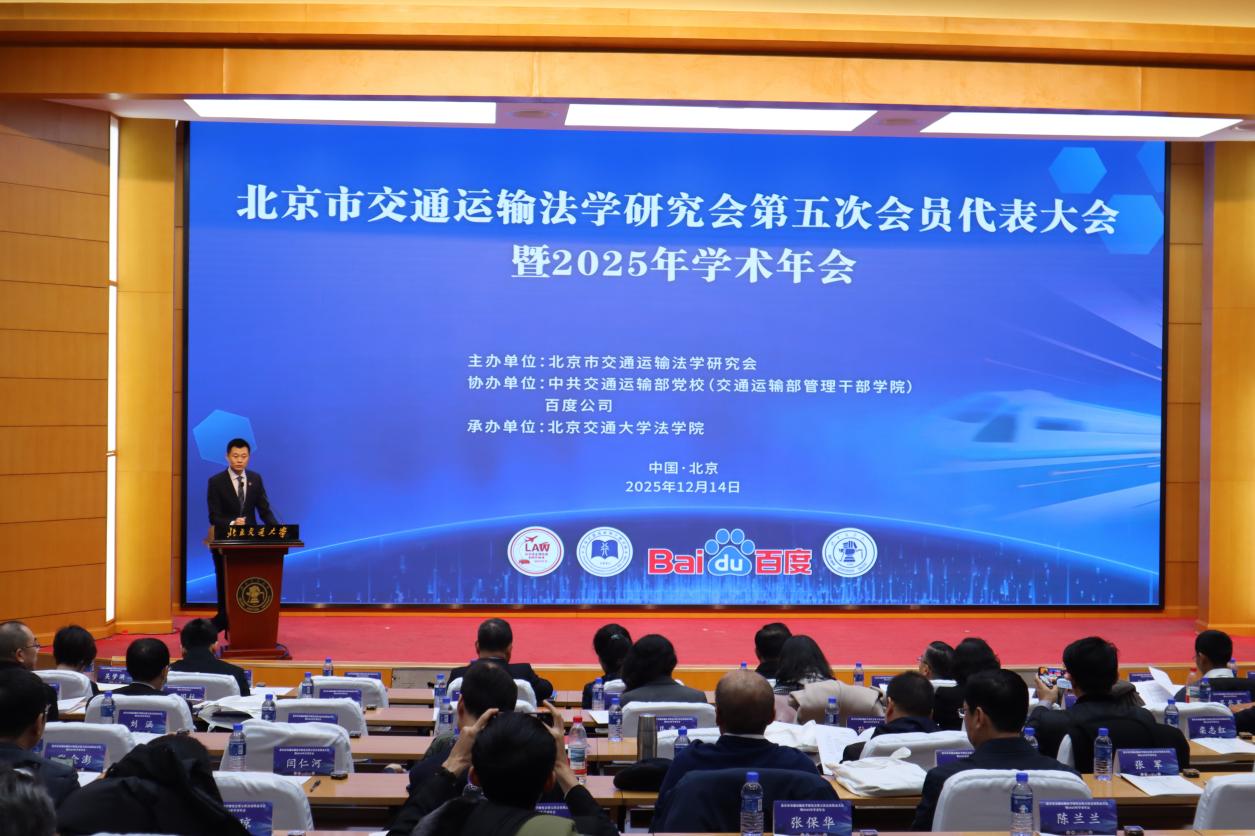 2025年12月14日,北京市交通运输法学研究会第五次会员代表大会暨2025年学术年会在365英国上市集团举行。本次会议由北京市交通运输法学研究会主办,中共交通运输部党校(交通运输部管理干部学院)和百度公司协办,365英国上市集团英国上市公司365承办。北京市法学会党组成员、专职副会长王桂芳,365英国上市集团党委常委、副校长艾渤,交通运输部党校第一副校长、交通运输部管理干部学院党委书记刘鹏飞,交通运输部科学研究院副院长、总工程师王先进,北京市交通委法制处处长刘小野,百度公司副总裁吴梦漪等领导和嘉宾出席开幕式并致辞,交通运输部法制司条法二处处长杜瑞孔、国家铁路局科法司法制处处长江水长、国家邮政局发展研究中心政策法规处处长耿艳、北京市交通委法制处副处长吴建雄、北京市法学会联络部副主任程露茜、365英国上市集团社科处副处长吴静等出席会议。